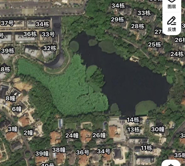 “我们小区是去年底交付的,收房时湖面上都是残荷,在业主们的要求下,物业对其进行了清理,但因为这个无名湖并不在我们小区红线范围内,所以清理得并不彻底。”